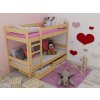 Dřevěná patrová postel, palanda z masivu borovice v mnoha povrchových úpravách s možností dokoupení příslušenství.